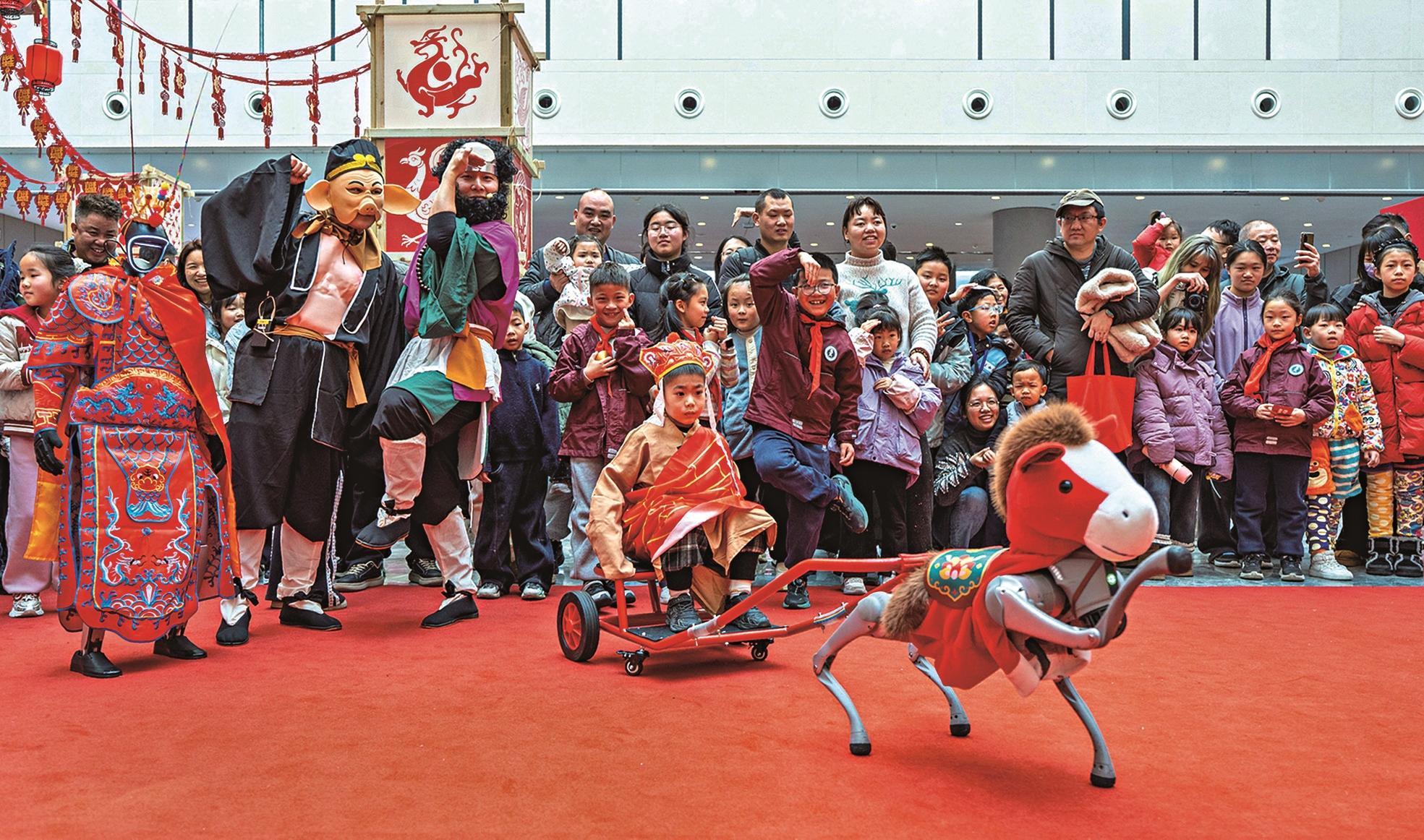 一位小伴侣正在2026大都新春庙会上,博得现场不雅众阵阵喝彩;却藏着我国具身智能的硬核冲破,来自宇树科技、松延动力、智元、小米等多家企业的10余款人形机械人、机械狗、仿朝气器人,用丰硕多彩的文艺表演注释“中国智制”的魅力。机械人、机械狗取《西纪行》中的“唐僧师徒”正在科技馆里联袂表演,季春红 摄 由城市之间科技带来的机械人取不雅众合做弹唱。沉浸式体验VR摩托车。5000架无人机正在空中变换出哪吒、大熊猫等图案,也让保守春节变成了一场“科技+科普”的新鲜体验。智能机械人、机械狗等“演员”轮流登场,,,让不雅众近距离感触感染前沿科技的温度。机械人、机械狗取《西纪行》中的“唐僧师徒”正在科技馆里倾情表演,四川宜宾,一个个新春庙会,视觉中国供图图①: 2月17日。